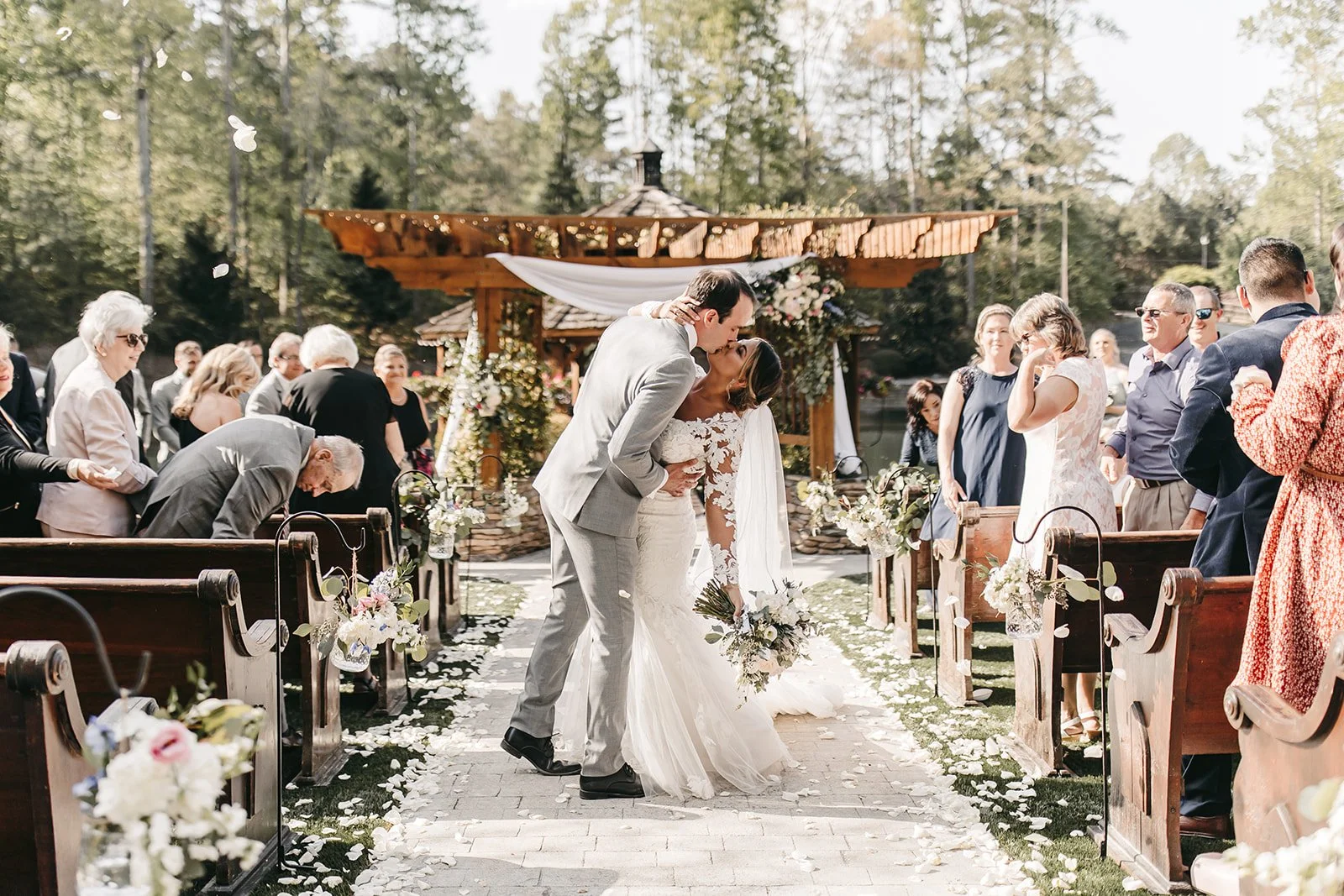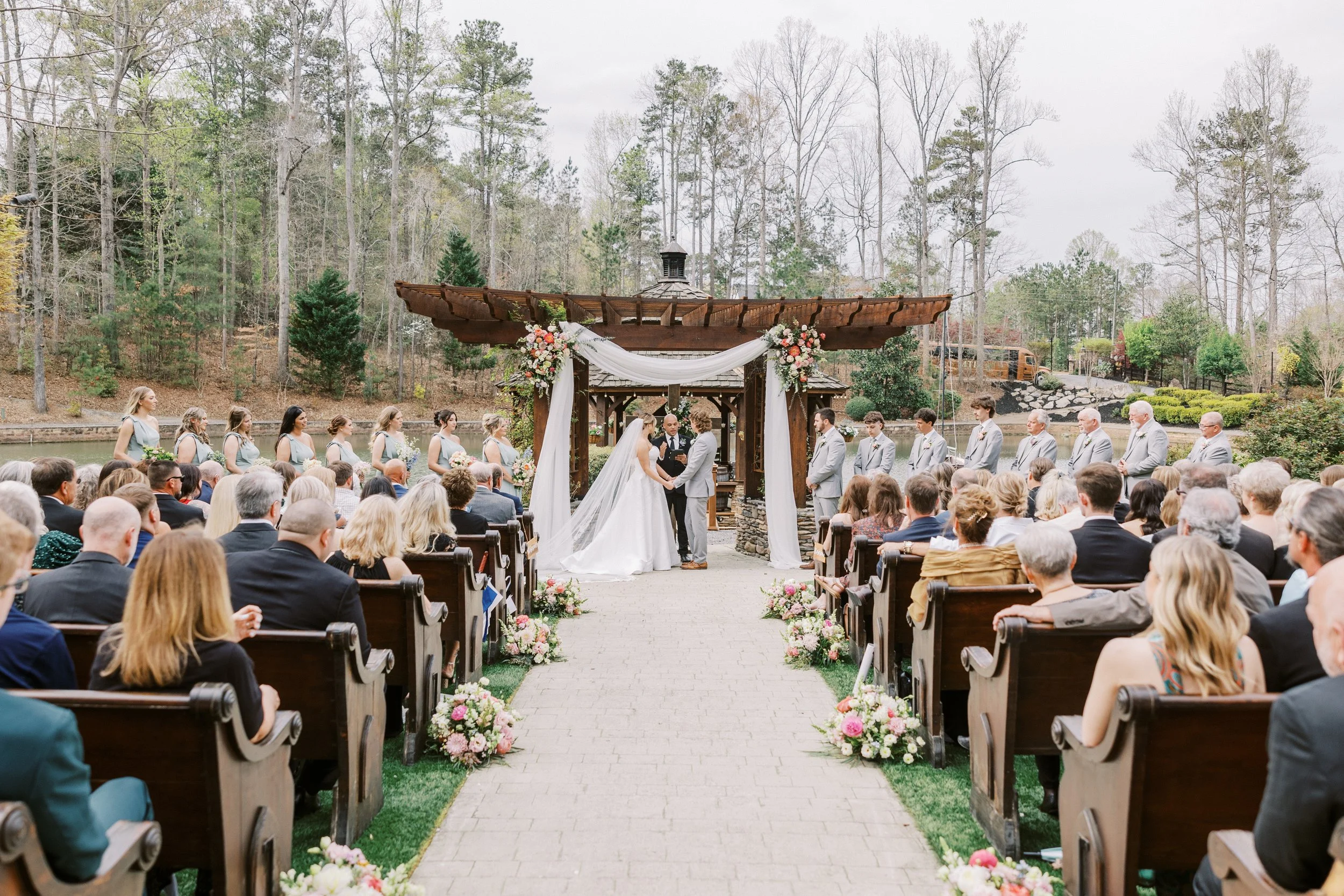 Ceremony + reception with a natural flow from lakefront vows to pavilion celebration.