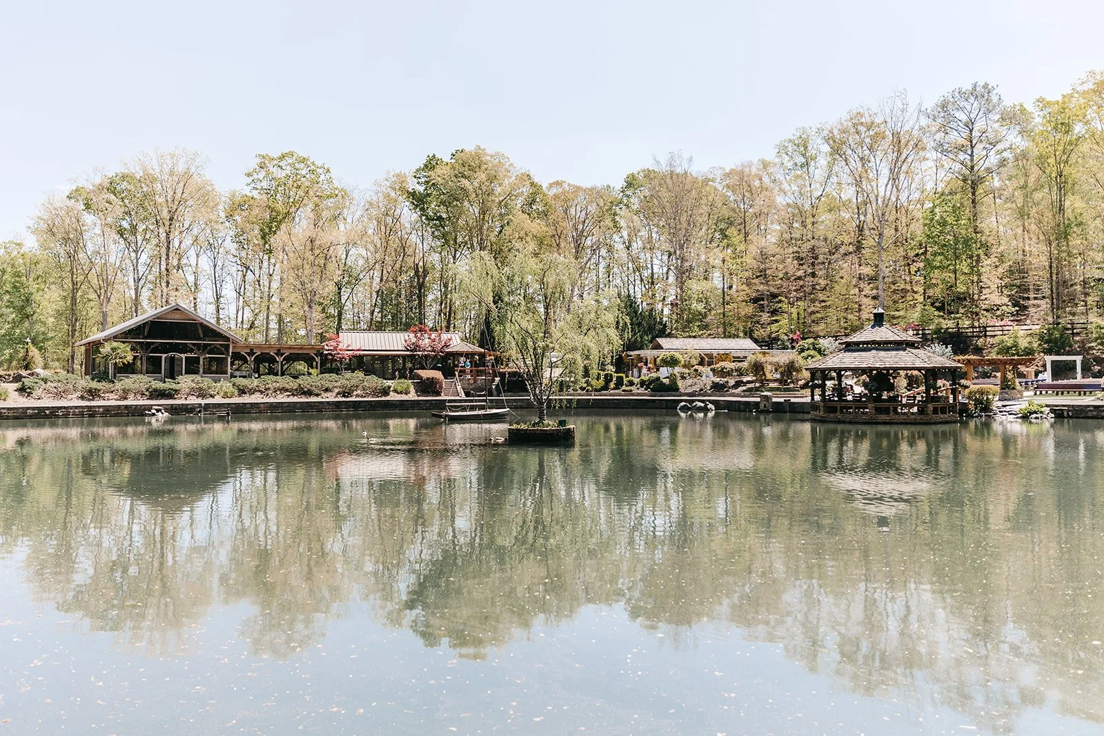 Tucked behind the gates in Woodstock, Rocky’s Lake Estate is a 12-acre setting with a lakeside gazebo and an open-air pavilion built for celebration.
